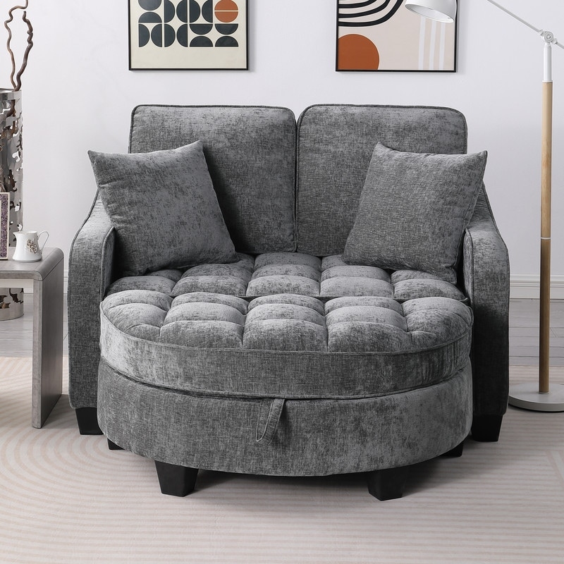 51'' Chenille Upholstered Two-Seater Sofa, Ottoman with Storage