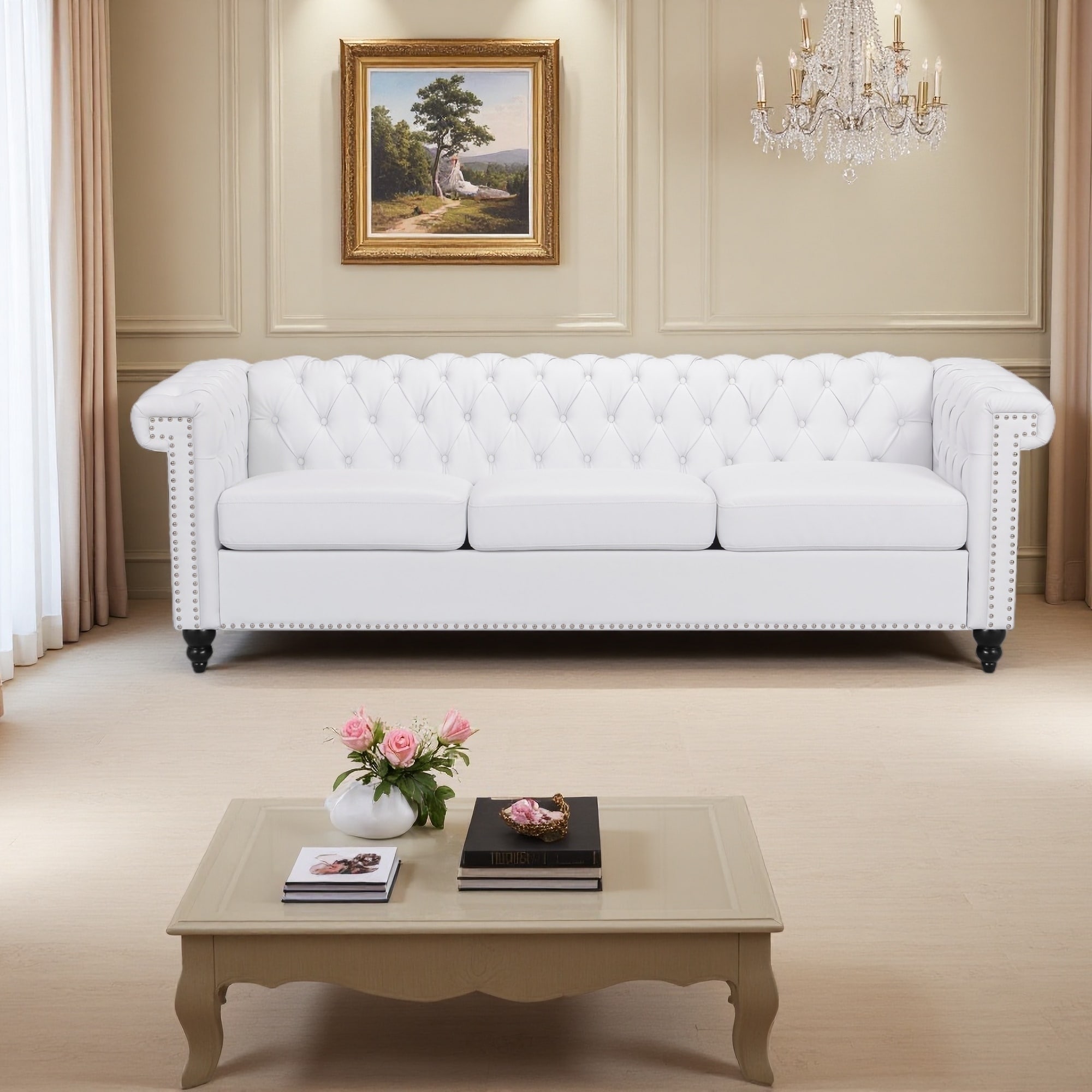 83" Chesterfield-Style Sofa with Button Tufting and Nail Head Accents, Low Back Plush Upholstery