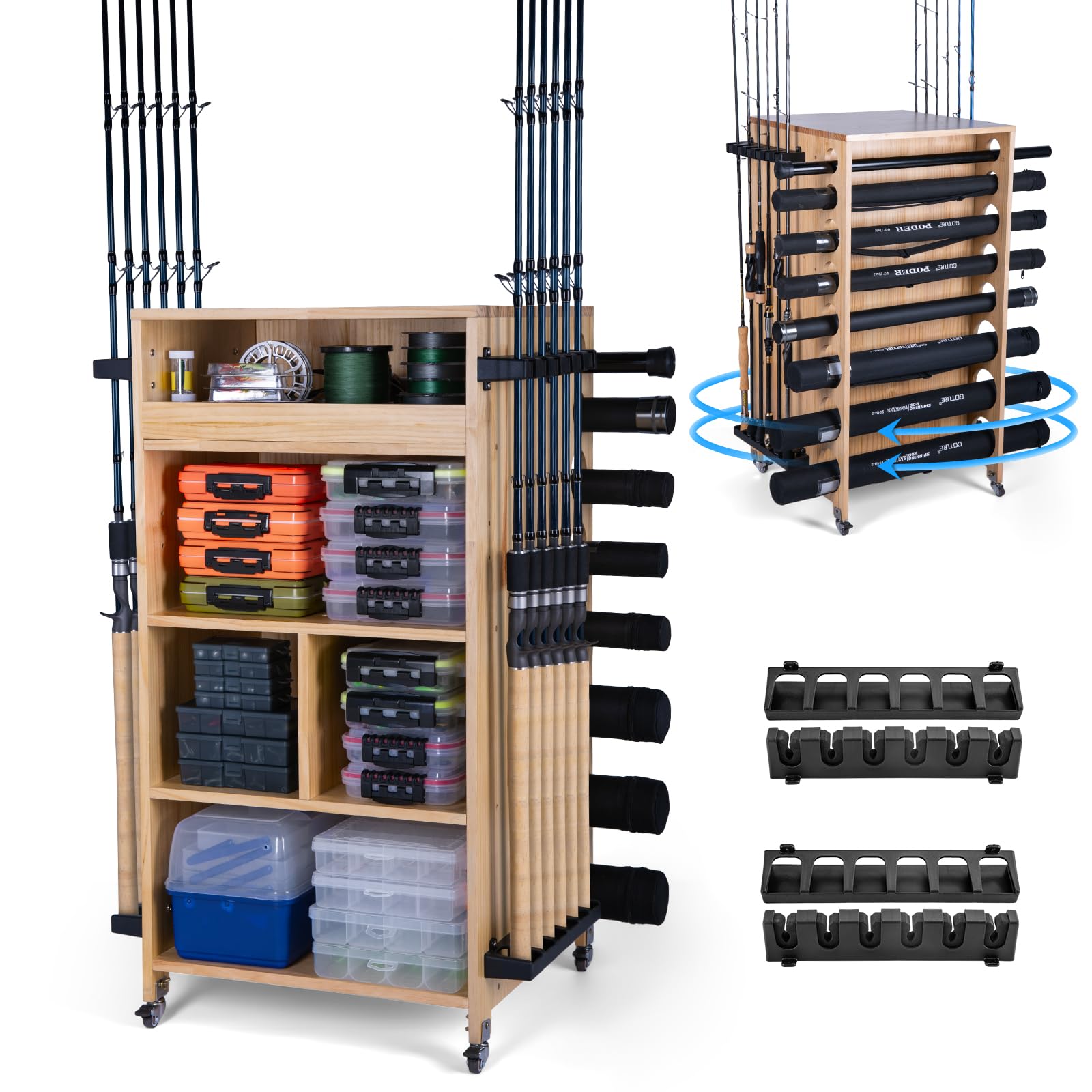 Goture Fishing Rod Holders for Garage, 360 Degree Rotating Pole Holders Rod Rack Storage up to 24 Rods or Combos Tackle Gear Equipment Organizer