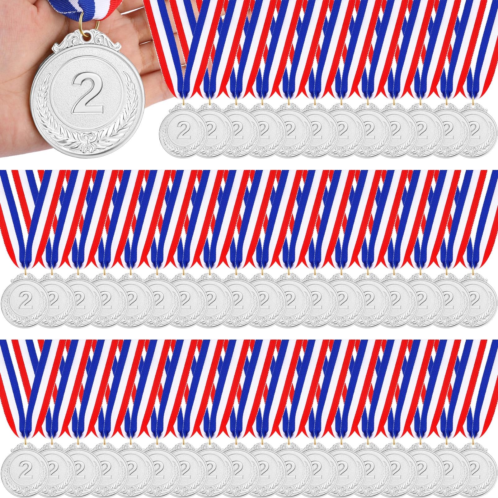Sufficient to Use: the package will bring you 120 pieces of medals, ample in quantity, enough to use, measuring about 2.6 inches/ 6.6 cm in diameter; And each medal has a hanging ribbon for wearing Reliable Material: award medals are made of quality zinc alloy material, sturdy and serviceable, not e