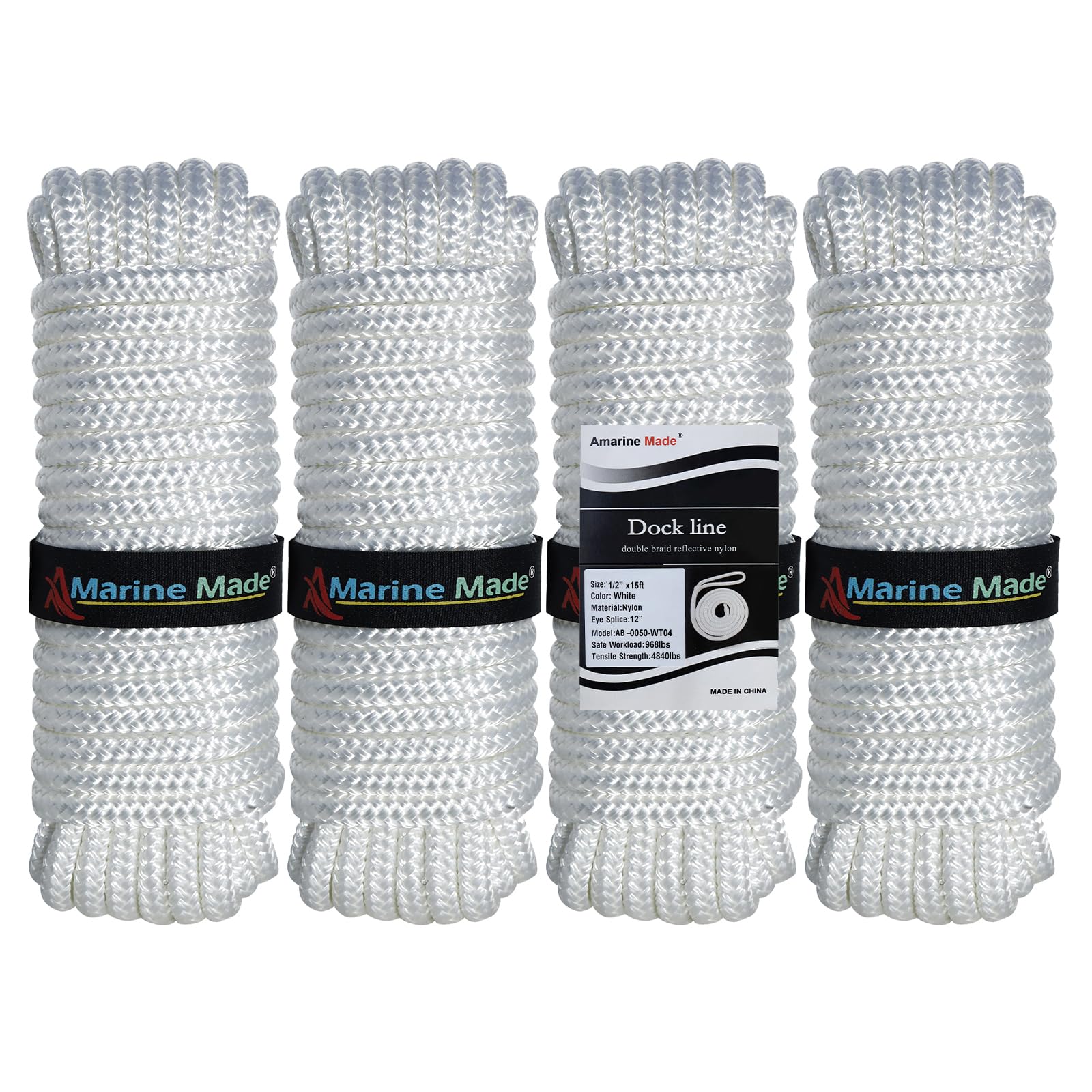 【MARINE-GRADE DOCK LINES】Secure your boat with confidence using the double braided dock line, featuring a 1/2 inch diameter, 12 inch eyelet, and 15ft length that's perfect for boats up to 35 feet (working load limit: 968 lbs. / breaking strength: 4,840 lbs.) 【DOUBLE-BRAIDED STRUCTURE】Premium