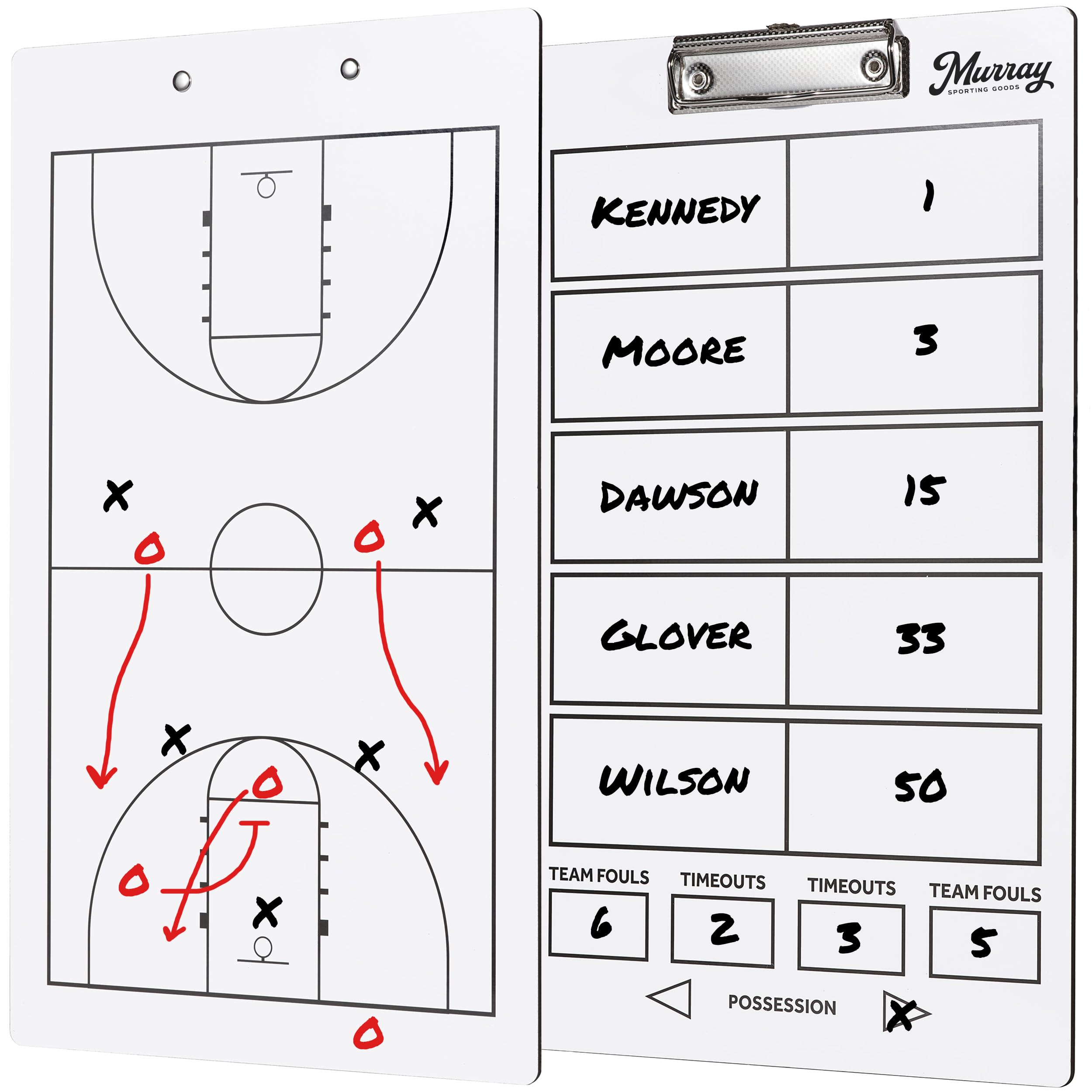 Murray Sporting Goods Basketball Timeout Dry Erase Coaches Clipboard | Double-Sided Basketball Court Clipboard Dry Erase White Board | Basketball Gift