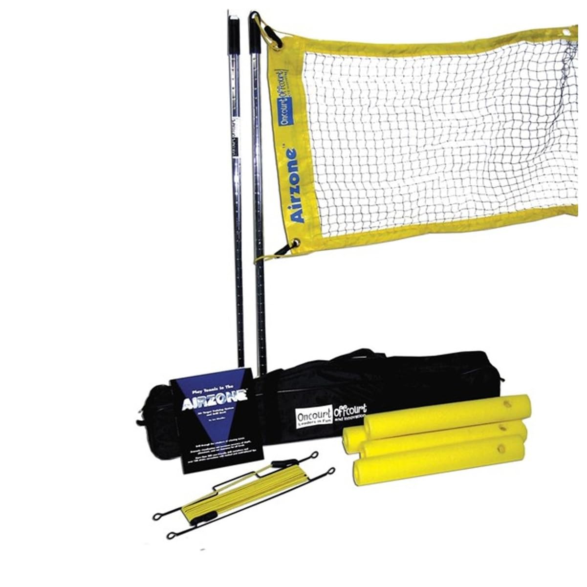 AIR TARGET SYSTEM: First portable, lightweight air target system. Sets up in minutes: no tools needed. Includes detailed game and drill booklet. MORE ARC ON SHOTS: Raises net height with another net or bungee (both items included in the package) to guide players to hit with more arc. STRONGER GROUND