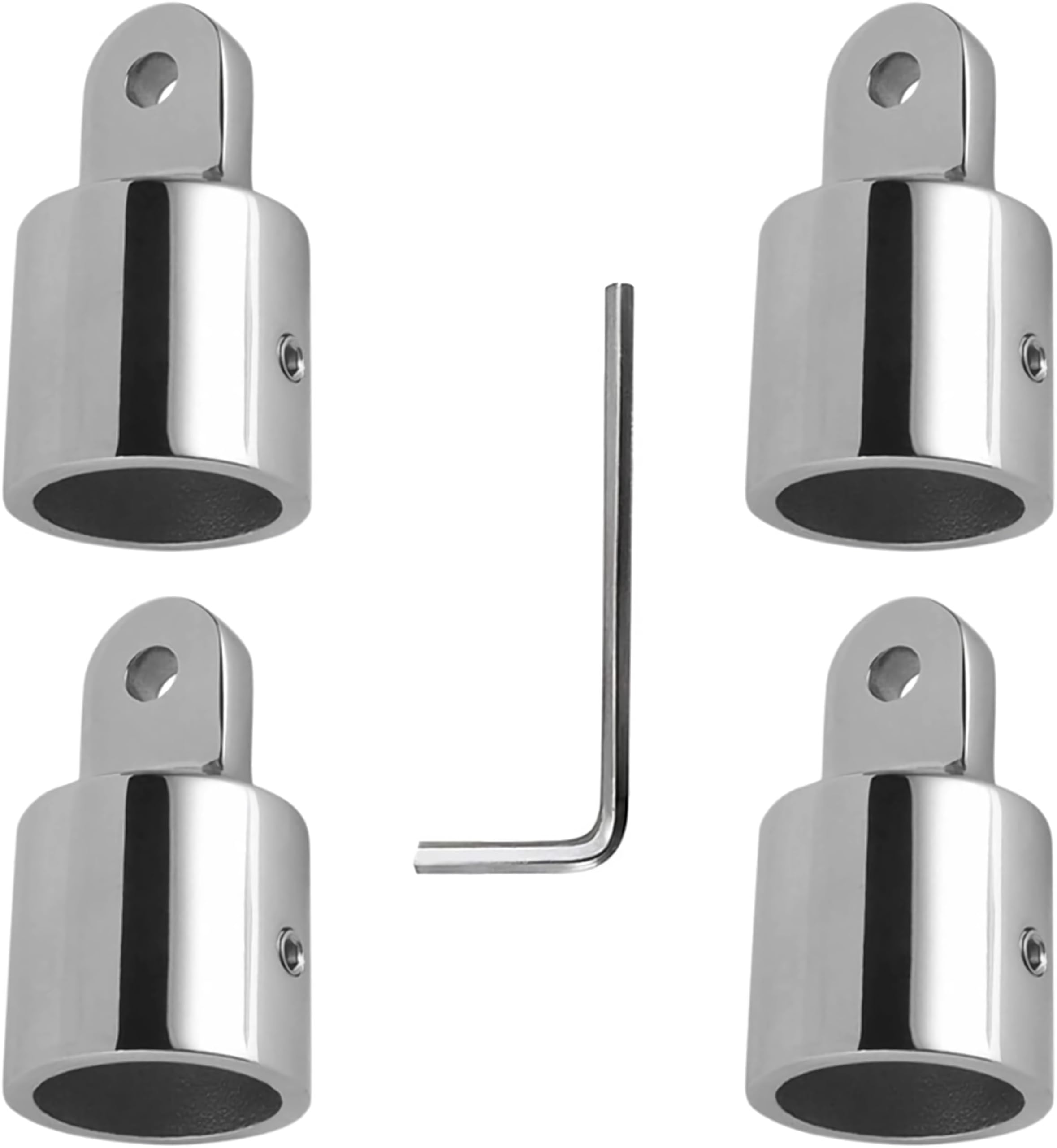 【Package Contents】This set includes 4 PCS of bimini top parts: 4 eye end caps, and 1 L-shaped hex key for convenient assembly. 【316 Stainless Steel Construction】Crafted from marine-grade stainless steel 316, these parts offer superior durability and longevity compared to plastic or nylon fit