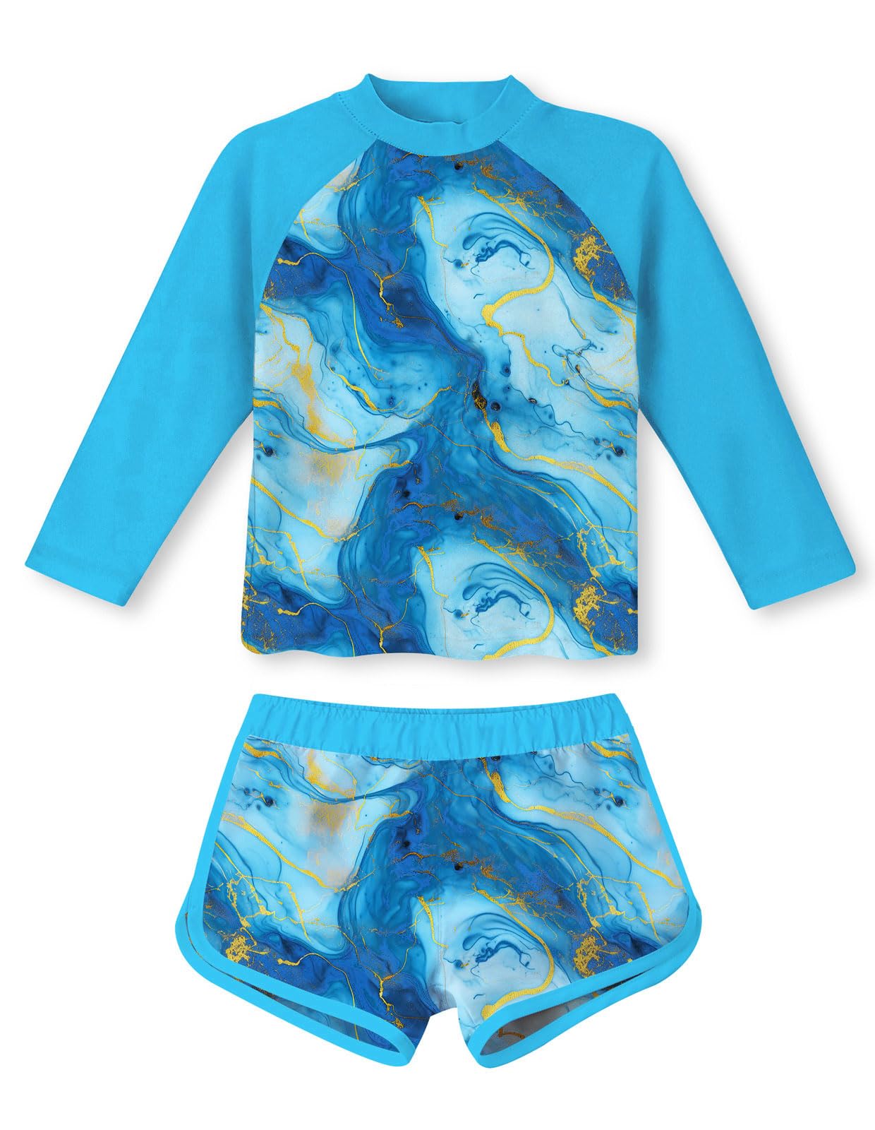 Design - Girls 2-Piece rashguard set, long sleeve swimsuit shirt with crew neck, elelastic bottom with mesh lining, graphic printed pattern at front and back for more cute look, The two-piece swim suit makes it easy for the child to wear and take off Sun Protection - The girls long sleeve swimsuit c
