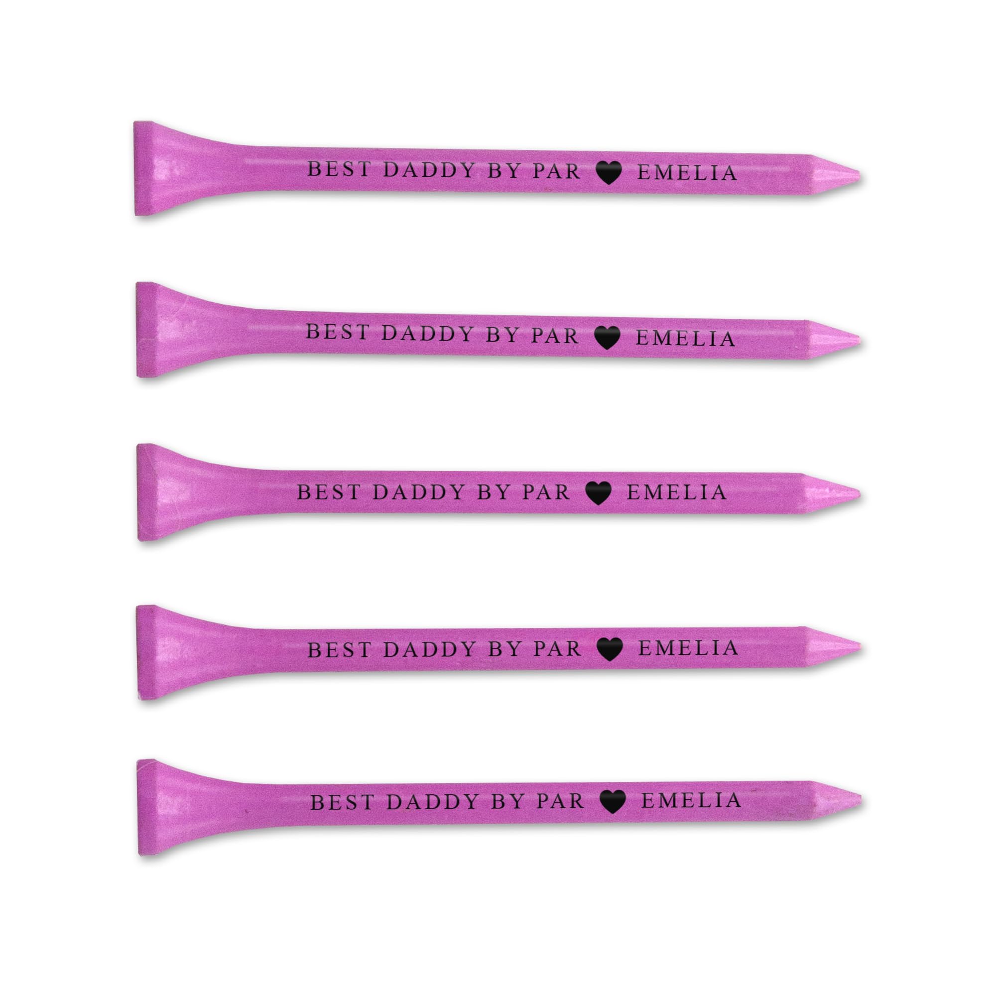 CUSTOMIZATION: Personalized golf tees with custom text printing on shaft, perfect for special events, corporate branding, and memorable gifts COLOR OPTIONS: Available in 5 striking colors including white, blue, green, pink, and natural to match any event theme or preference DIMENSIONS: Professional