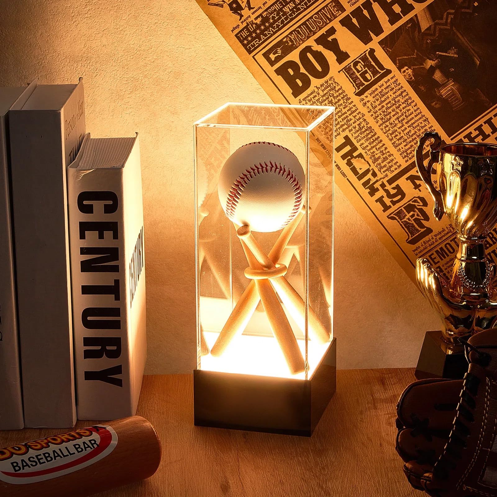 What You Will Get: the package comes with a baseball display case with LED light base, which can be adopted as an ideal decoration for your bedroom, living room, study room, office, and more to add more to your space charming, but also a nice gift option for those who like to collect baseballs Ideal