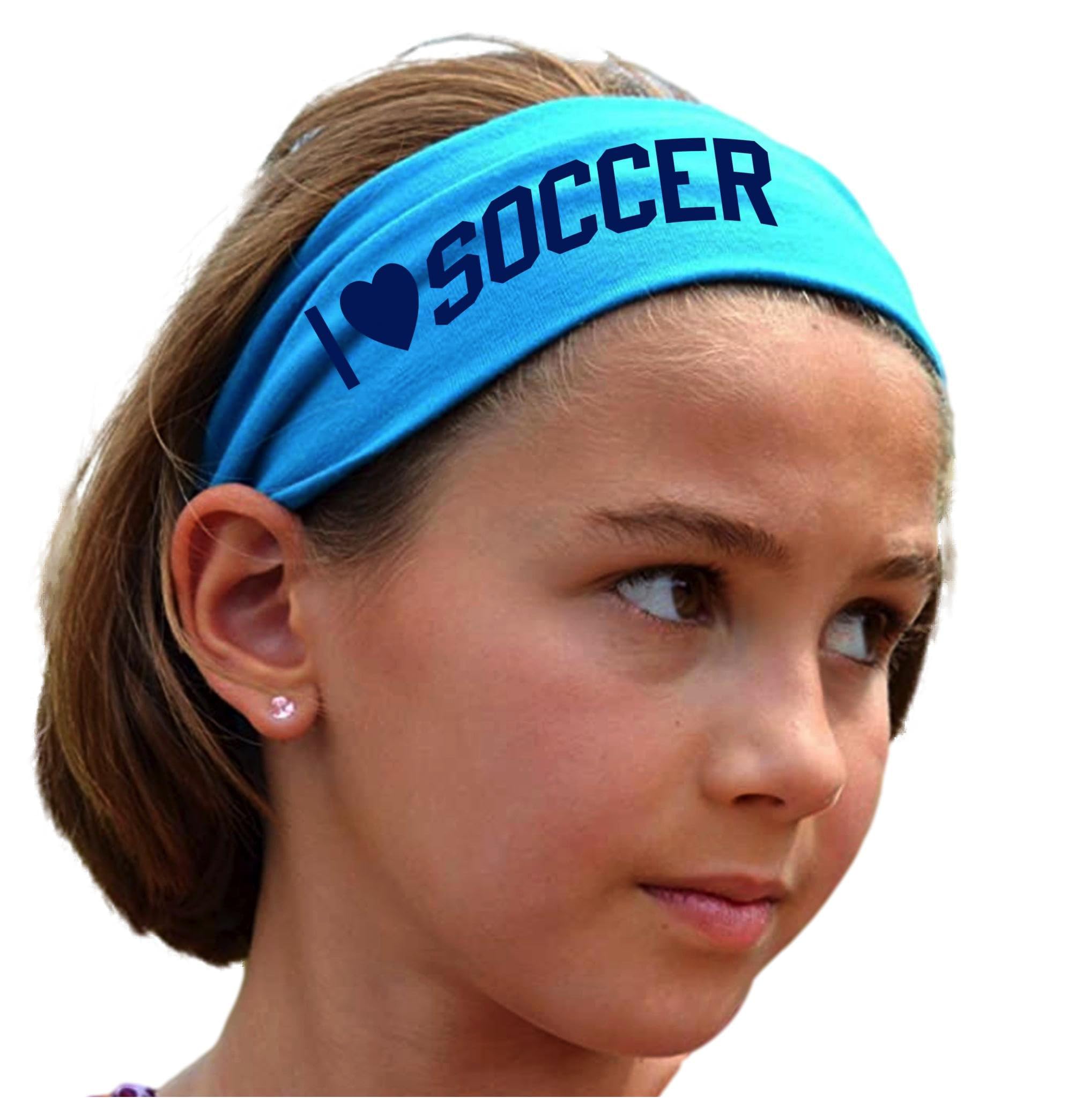 I Love Soccer Cotton/Lycra Stretch Headband Customized in the Colors of Your Choice - U Pick!