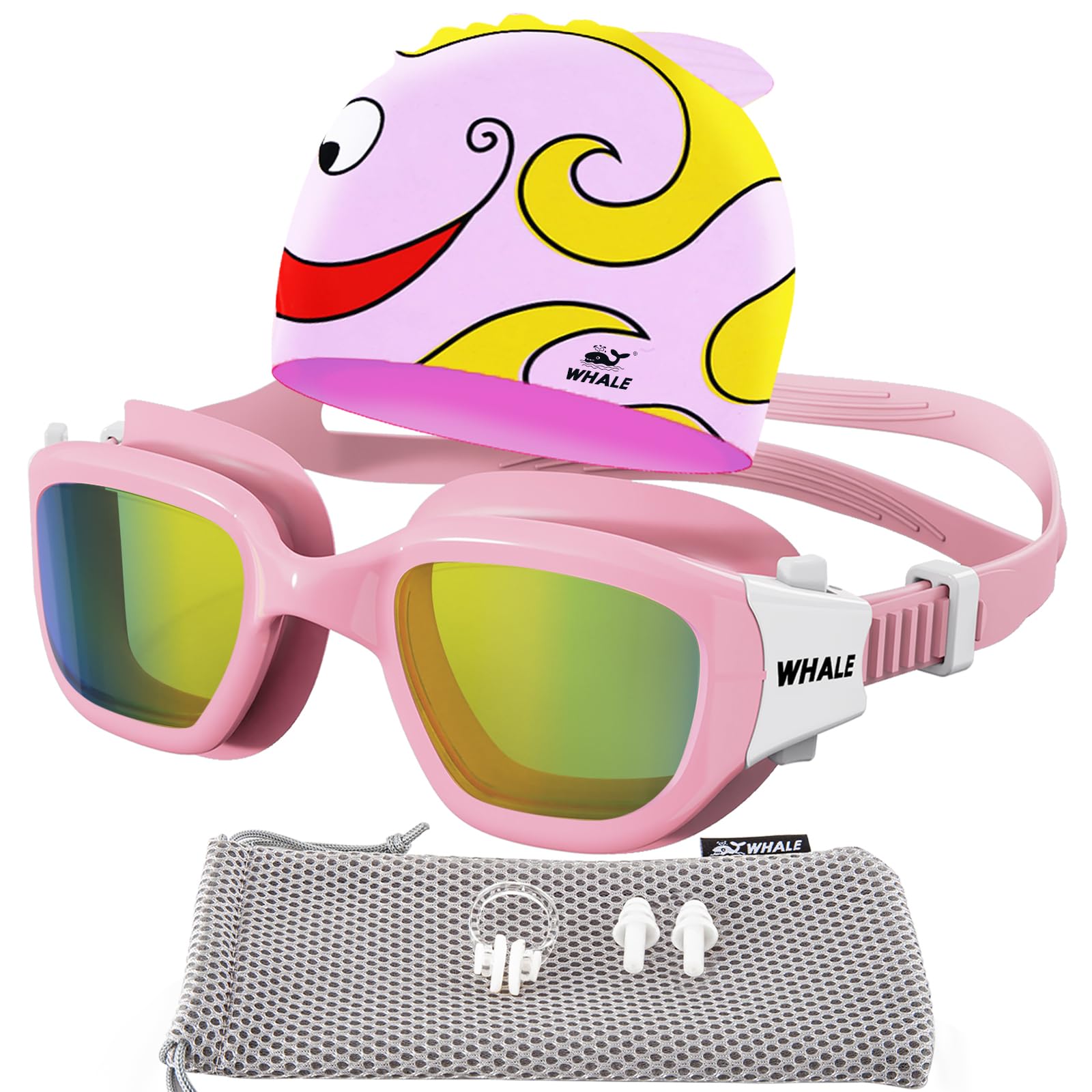 Whale Kids Swim Goggles Wear Comfortable UV400 Antifog Polarized Swimming Goggles Suitable for ages 3-14