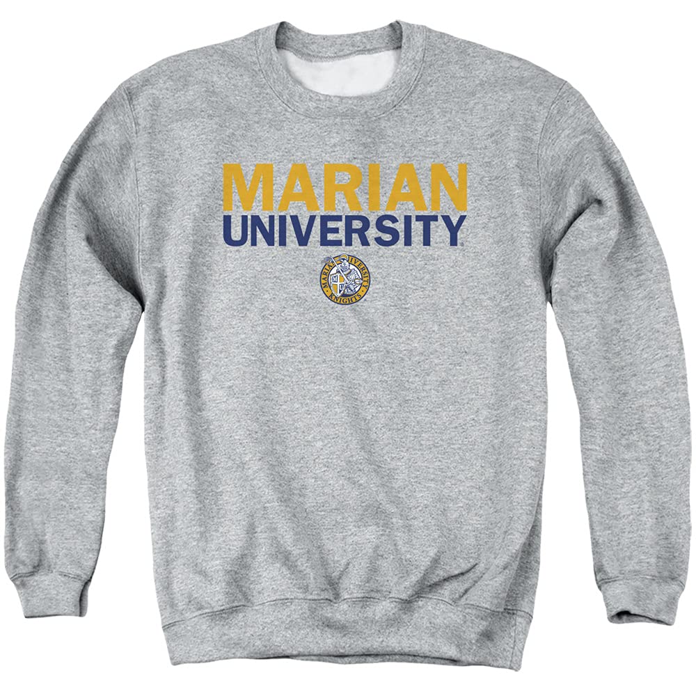 MARIAN UNIVERSITY OFFICIAL STACKED UNISEX FIT CREWNECK SWEATSHIRT - This adult crew neck Sweatshirt looks stylish on both men and women that will make it great for easy, everyday wear. LASTING DURABILITY - All our graphic designs are printed on the highest quality fabrics that provide a comfortable