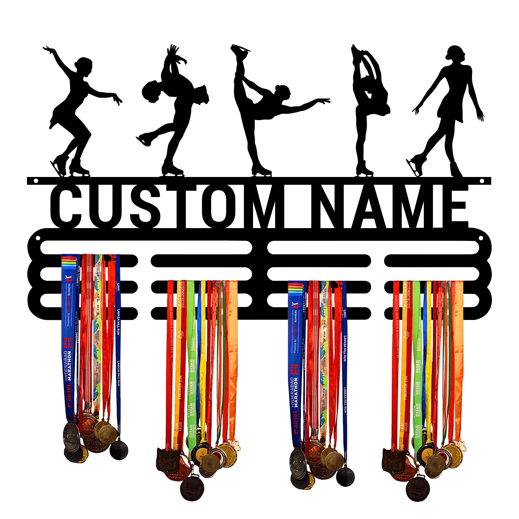 Custom Ice Skating Medal Hanger Display Holder Rack for Awards and Ribbons,Personalized Name Sports Medal Holder Display Rack Black Metal Shelf for