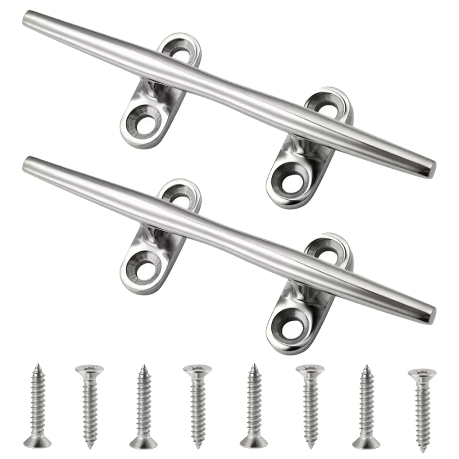 Boat Cleat 8 inch Stainless Steel:Marine-Grade 316 Stainless Steel, Superior corrosion resistance against saltwater, rust, and harsh weather, ensuring long-lasting durability for boats, docks, and marine Open Base Boat Cleat:Open Base Design for Easy Rope Access,Allows quick and secure attachment of