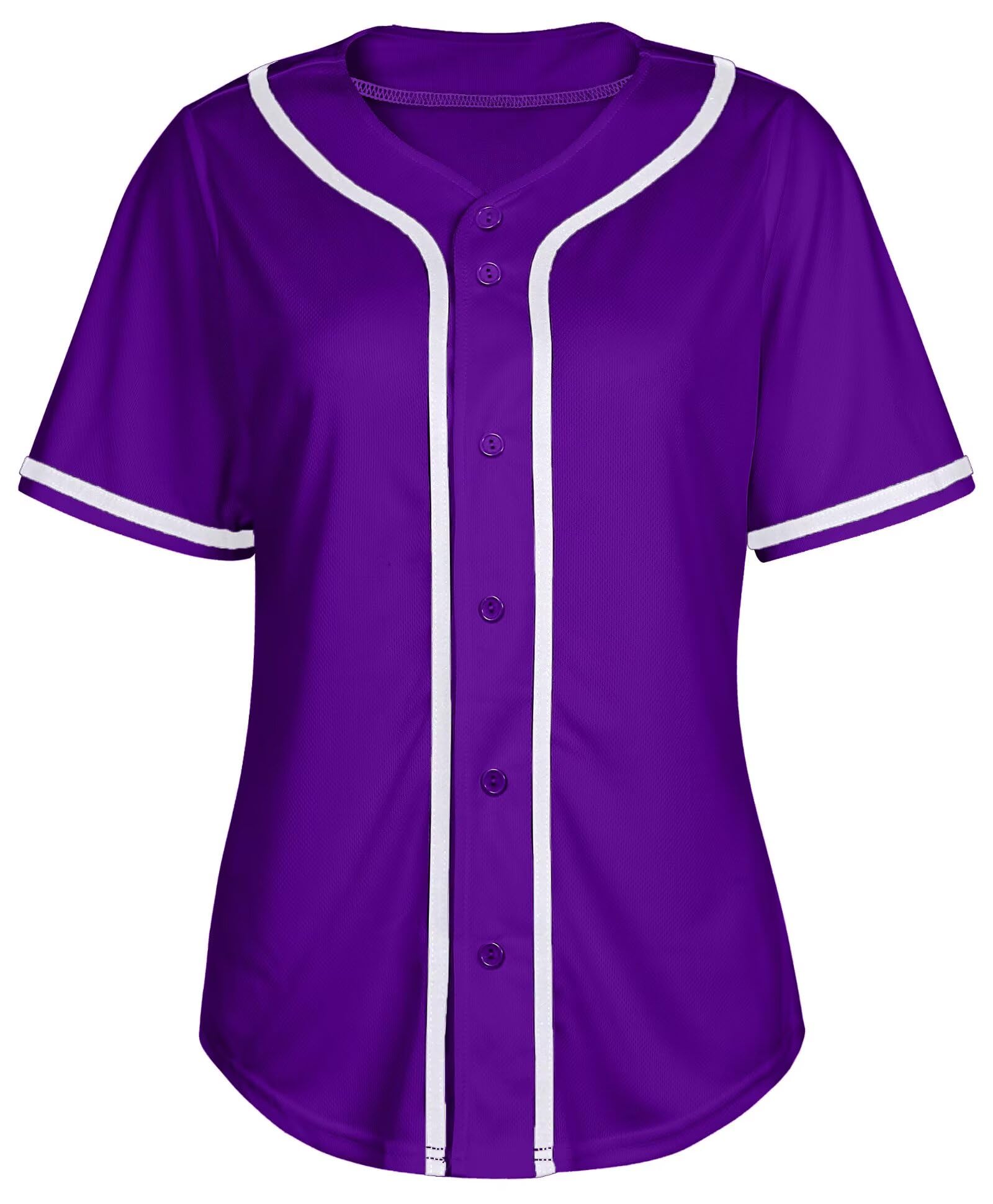 Material:Breathable,quick dry, soft, lightweight, durable and knitted fabric,Superior quality fabrics promote heat dissipation. Easy to care for Style:Solid classic baseball jersey design, Full button down closure baseball softball jersey, Loose fit,Short sleeves,Casual Womens wear, simple but trend