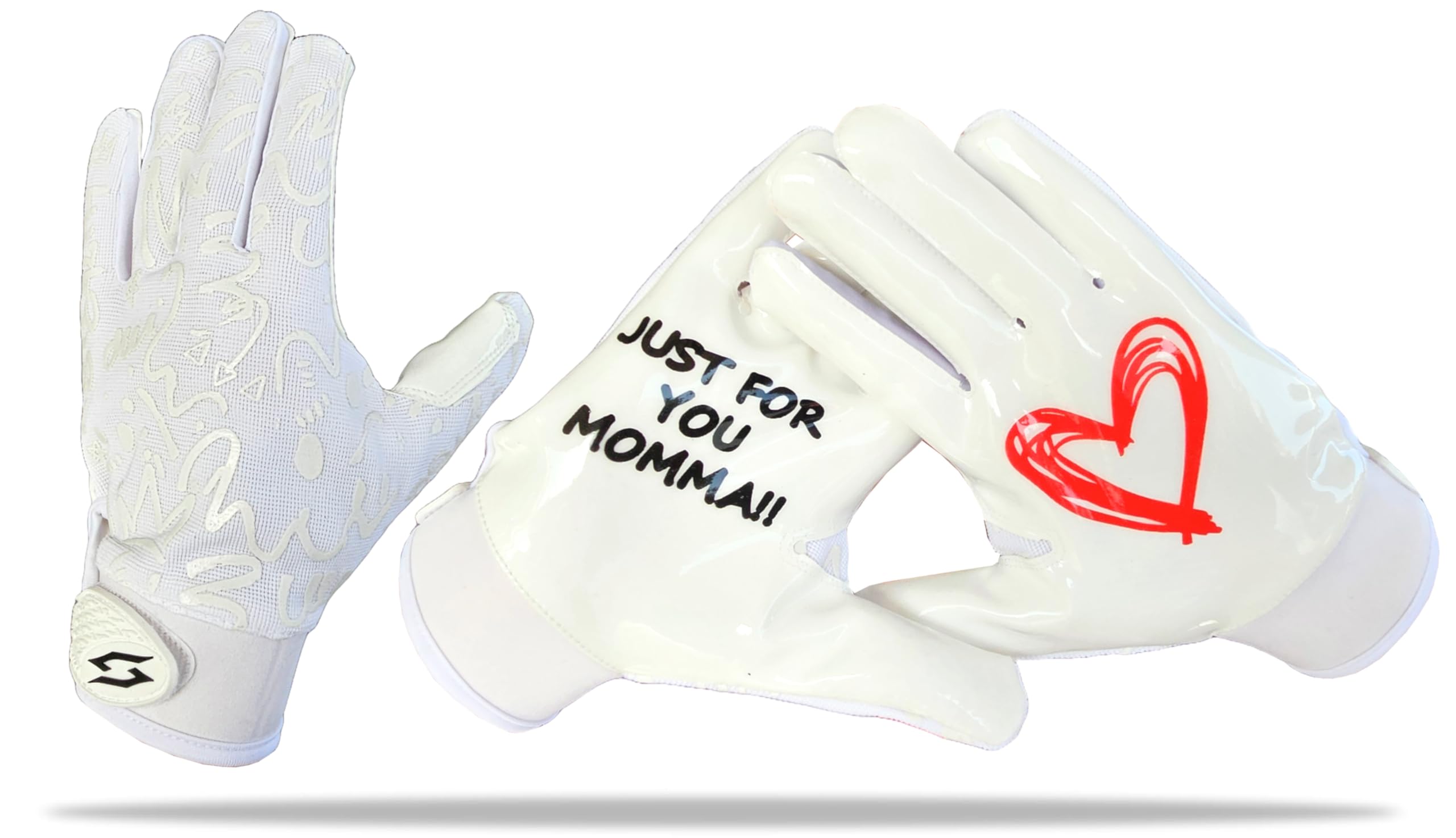 SUPER STICKY PALM TECHNOLOGY: Stealth Just For You Momma football receiver gloves feature advanced palm design with super sticky palms for superior control of the ball in all weather conditions. PERFECT FIT: Flexible material with strategic padding provides excellent protection, comfort and natural