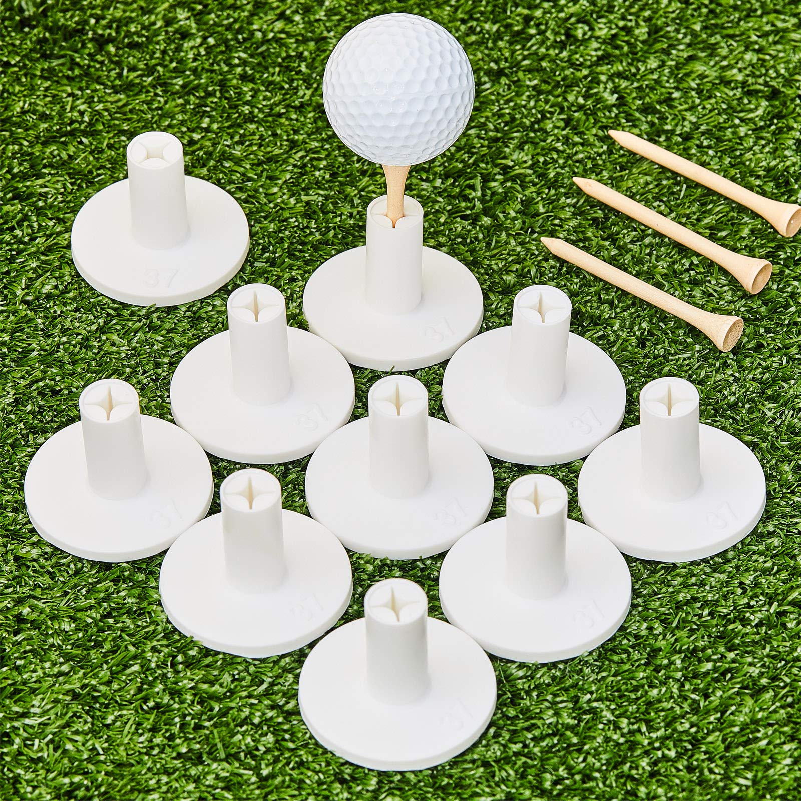 Sumind 10 Set Golf Rubber Tee Holder Set for Driving Range Golf Practice Mat Indoor Outdoor Size 1.5 Inch (10 Rubber Tee Holders, 10 Bamboo Tees)