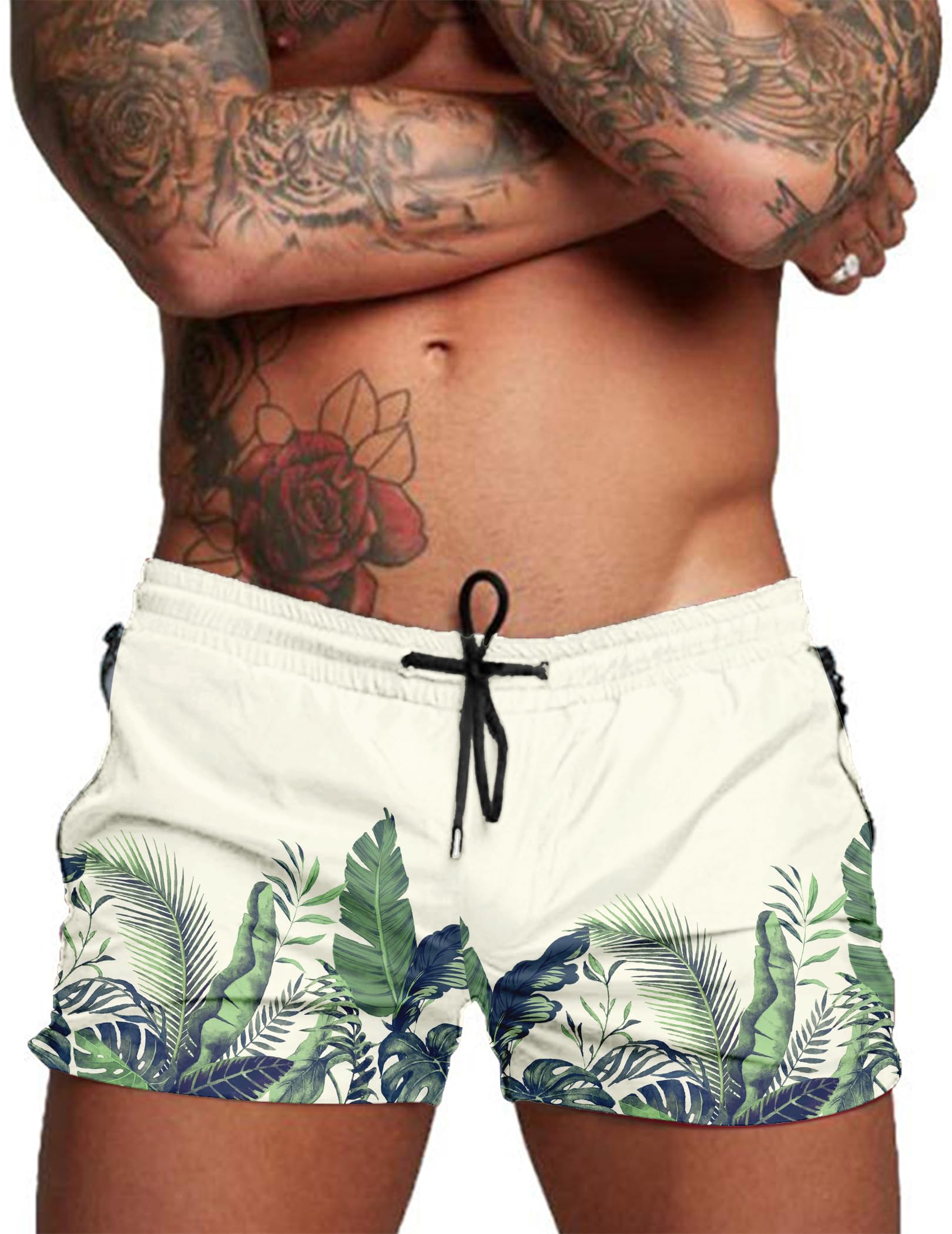 Quick Dry --- The men's swimming trunks made of super quick-drying polyester fabric, soft and comfortable, lightweight and easy to dry, to help you get rid of wet experience in minutes after your sport. Classic Design --- Men's swim short comes with elastic waistband and adjustable drawstring to fit