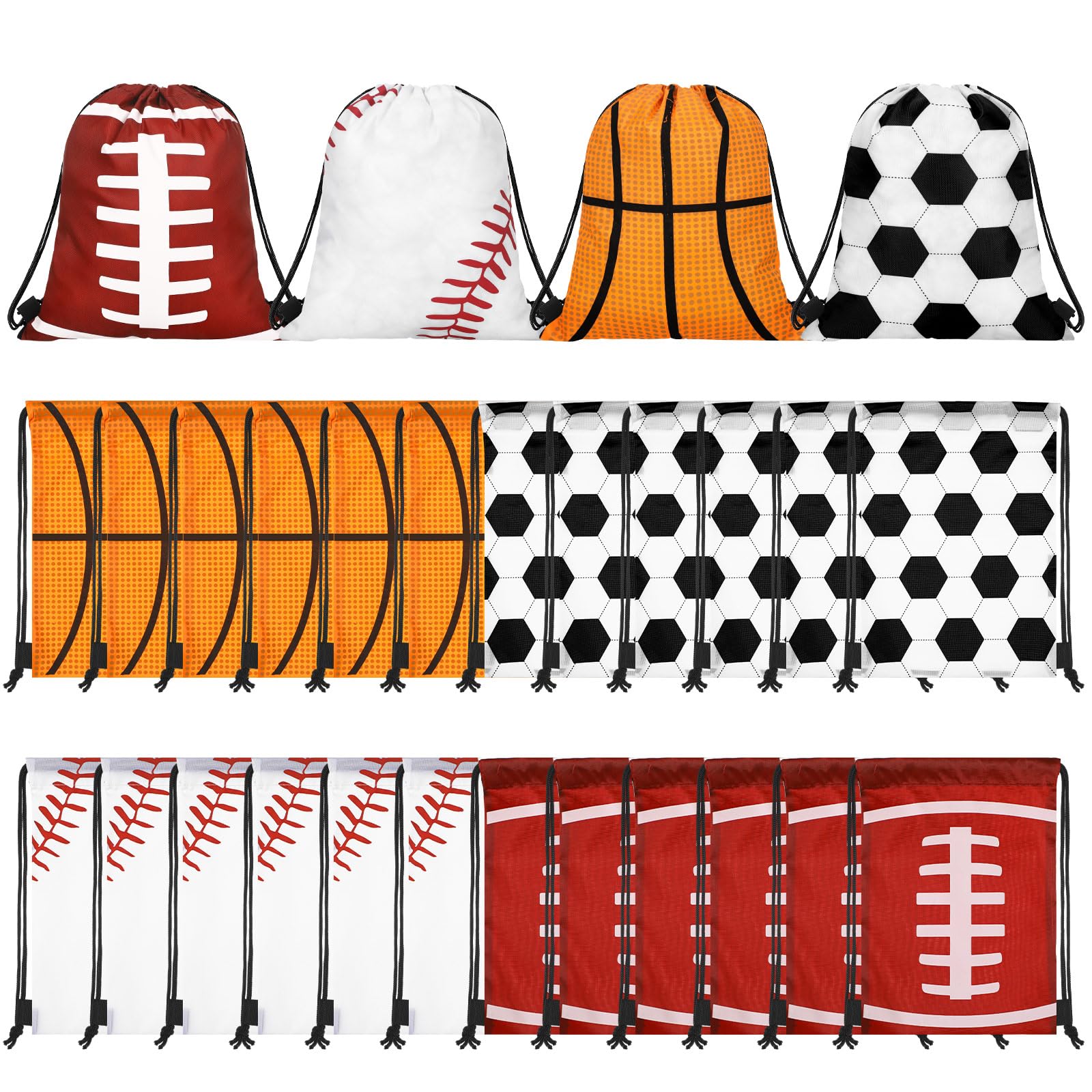 Tanlade 24 Pcs Drawstring Bags Cinch Sack Candy Drawstring Bag Goodie Favor Bags Supplies Gifts for Sports Party Men Women(Mixed ball,7 x 10 Inch)