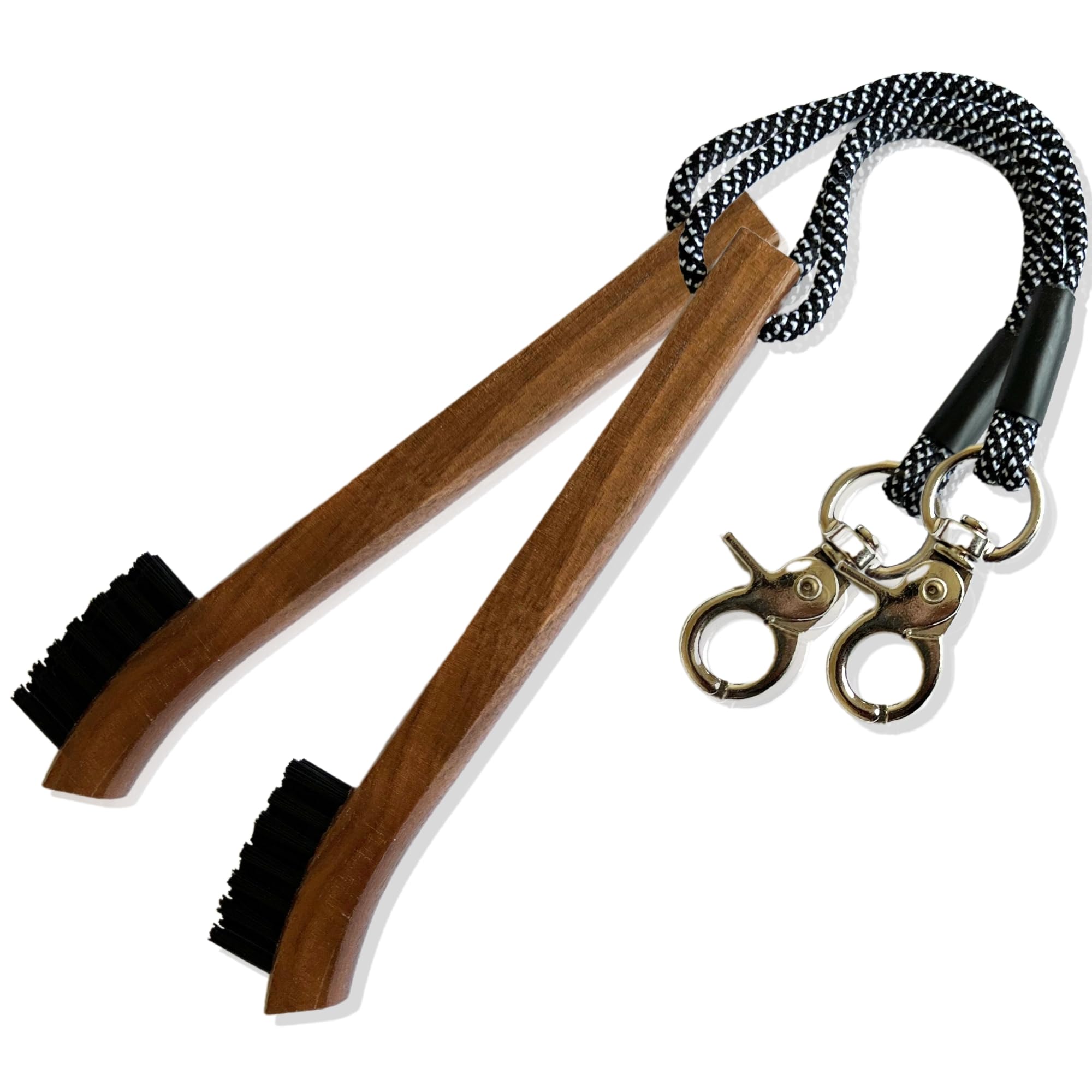 HIGH QUALITY MATERIAL - Premium dark walnut wood golf brush with nylon bristles, paracord, and stainless steel clip. Note: Due to natural wood finish, tones vary in each brush. DESIGN - This brush was designed to allow safe and effective cleaning of golf clubs. No more scratches from rough metal bru