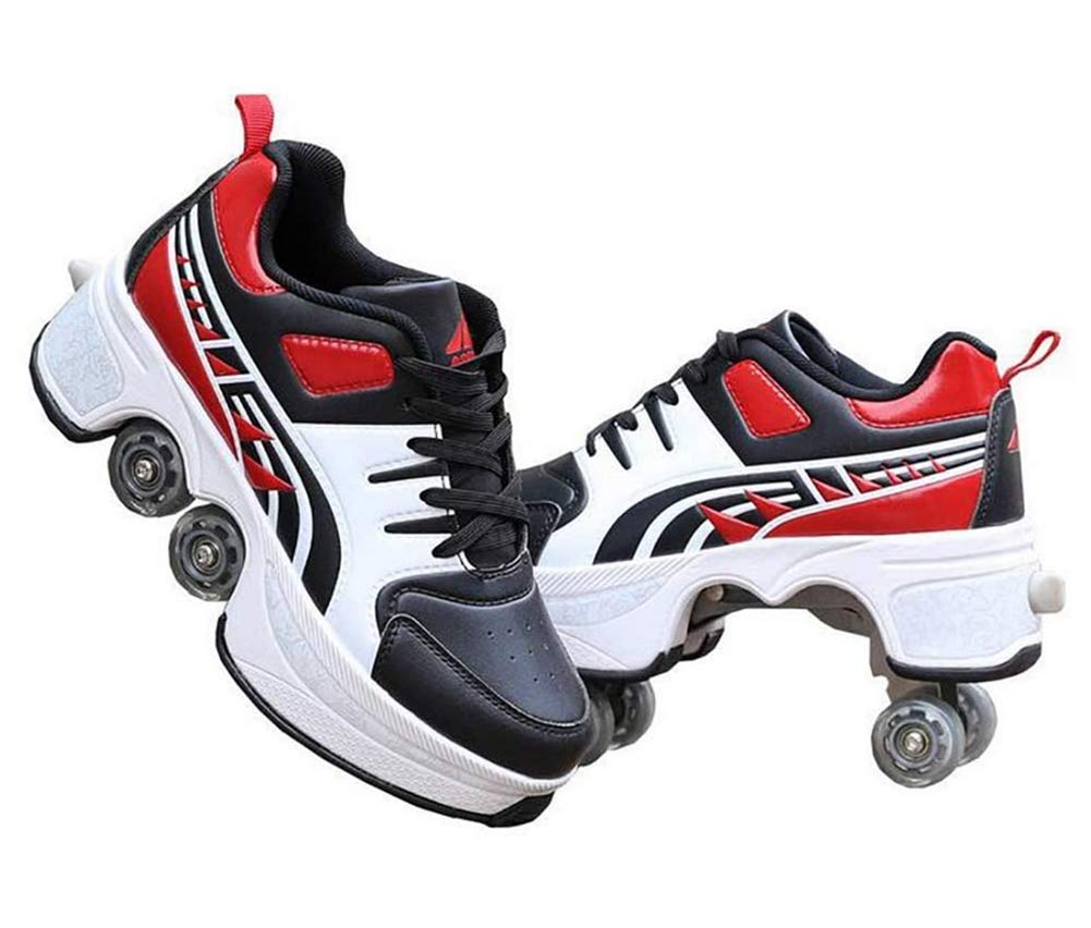 Double-Row Deform Wheel Automatic Walking Shoes Invisible Deformation Roller Skate 2 in 1 Removable Pulley Skates Skating Rollerskates Outdoor Parkour