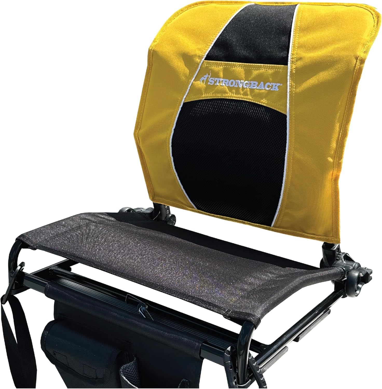 The ONLY portable stadium seat with patented STRONGBACK lumbar support built into the frame to relieve back pain when sitting on hard bleachers or benches. INCLUDES additional removable black with yellow seat back cover MULTIPLE reclining positions with additional lumber padding. Like leaning back?