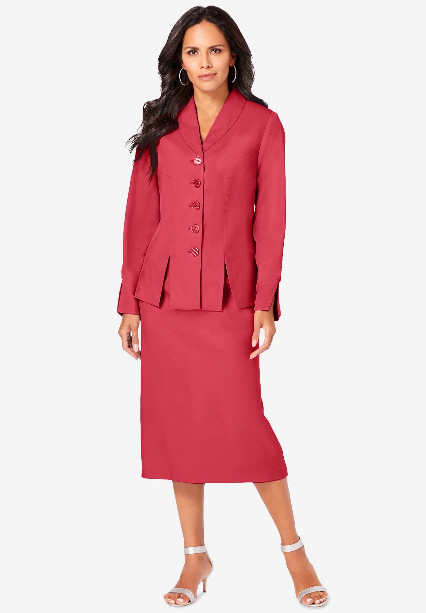 Plus Size Women's Plus Size Long Sleeve Shawl-Collar Jacket & Sheath Skirt Set - 2-Piece Suit by Roaman's in Antique Strawberry (Size 22 W) Skirt Suit