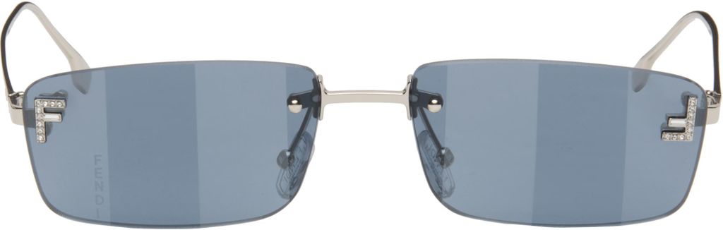 Men's Fendi First' Crystal Sunglasses - Black Rectangular rimless metal-frame sunglasses. · Blue lenses · Logo and striped etched at lenses · 100% UVA/UVB protection, category 2 · Adjustable rubber nose pads · Crystal-cut logo at face · Logo...
