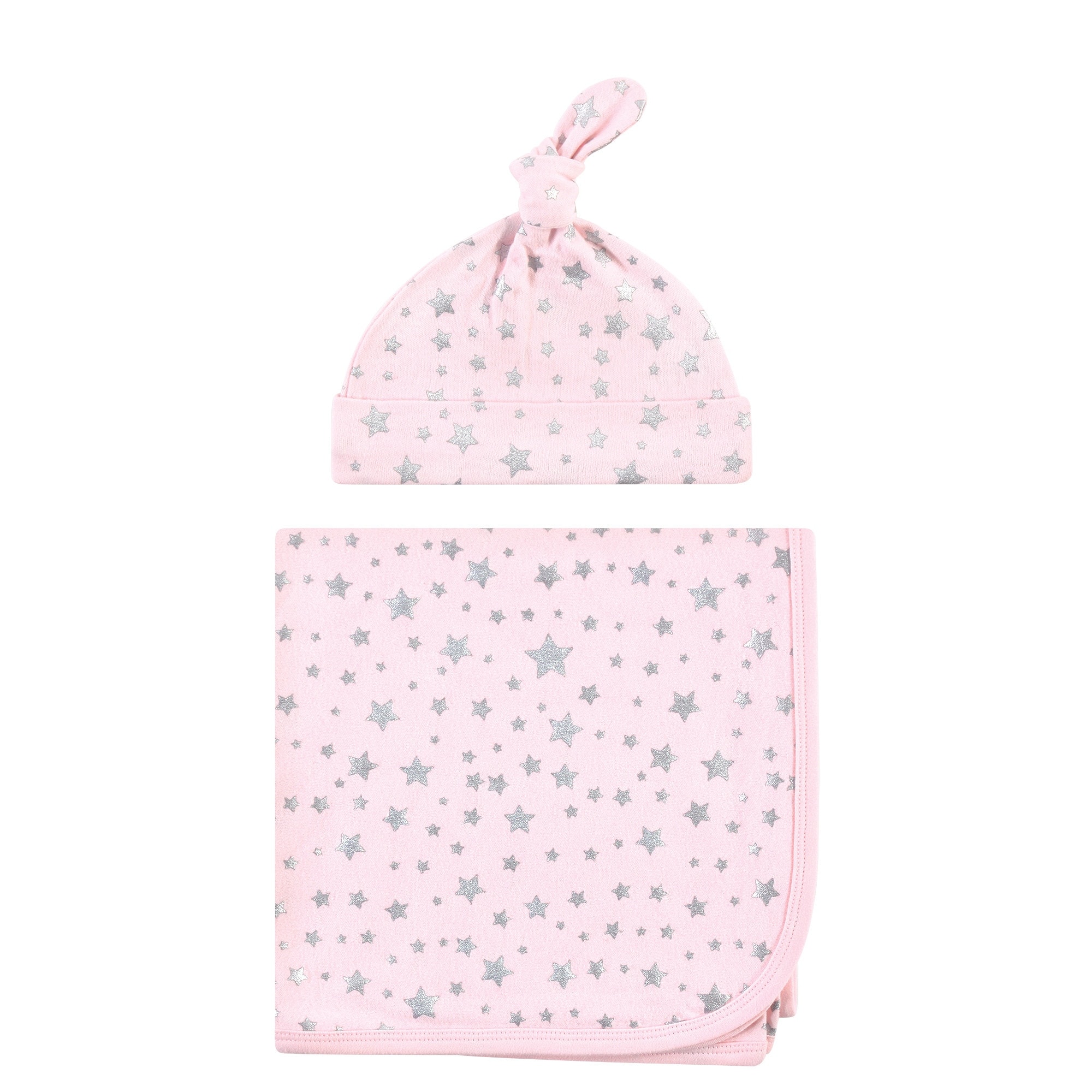 Hudson Baby Infant Girl Swaddle Blanket and Cap or Headband, Silver Pink Star, One Size - Silver Pink Star - One Size