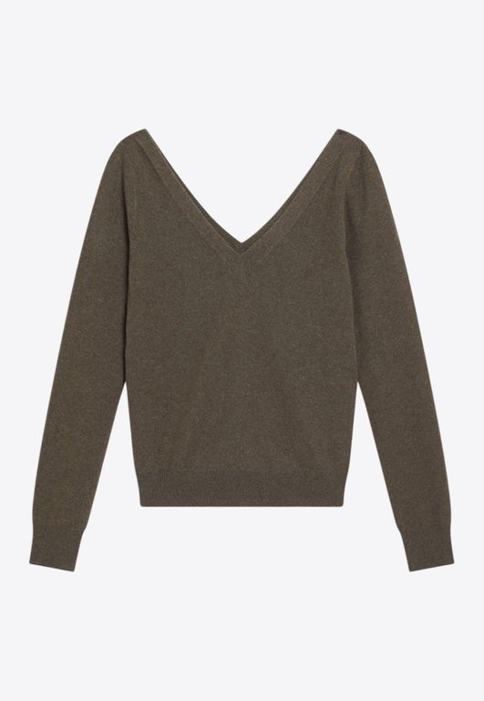 Women's Saint Laurent V-Neck Cropped Sweater - Brown - Sweaters Material: 100% cashmere. V-neck. Long sleeves. Ribbed knit. Straight hem. Made in Italy