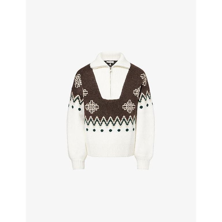 Women's The Couture Club Fairisle Quarter-Zip Knitted Sweater - Natural - Sweaters The Couture Club knitted jumper70% polyester, 18% acrylic, 10% polyamide, 2% elastaneZip fasteningRelaxed boxy fit, contrast ribbed funnel neck, 1/4 zip, long...