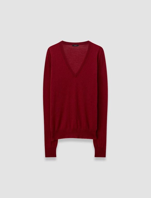 Women's Joseph Cashair V Neck Sweater - Red - Sweaters The Cashair V Neck Jumper is a relaxed fit, lightweight knit jumper, crafted from 100% cashmere. This JOSEPH signature knit is soft, delicate and semi sheer, finished with a ribbed neckline, hem...