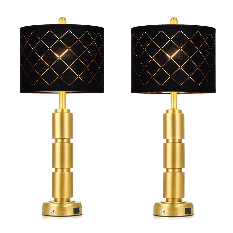 Elevate your workspace or bedside with this set of two elegantly functional table lamps.