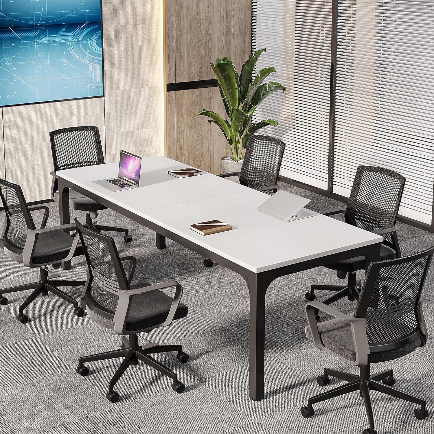 This modern rectangular conference table is a practical centerpiece for offices and boardrooms, with dimensions of 78.74"L x 27.56"W x 29.53"H (0.7D x 2W x 0.75H Meters) that comfortably accommodates 6-8 people.