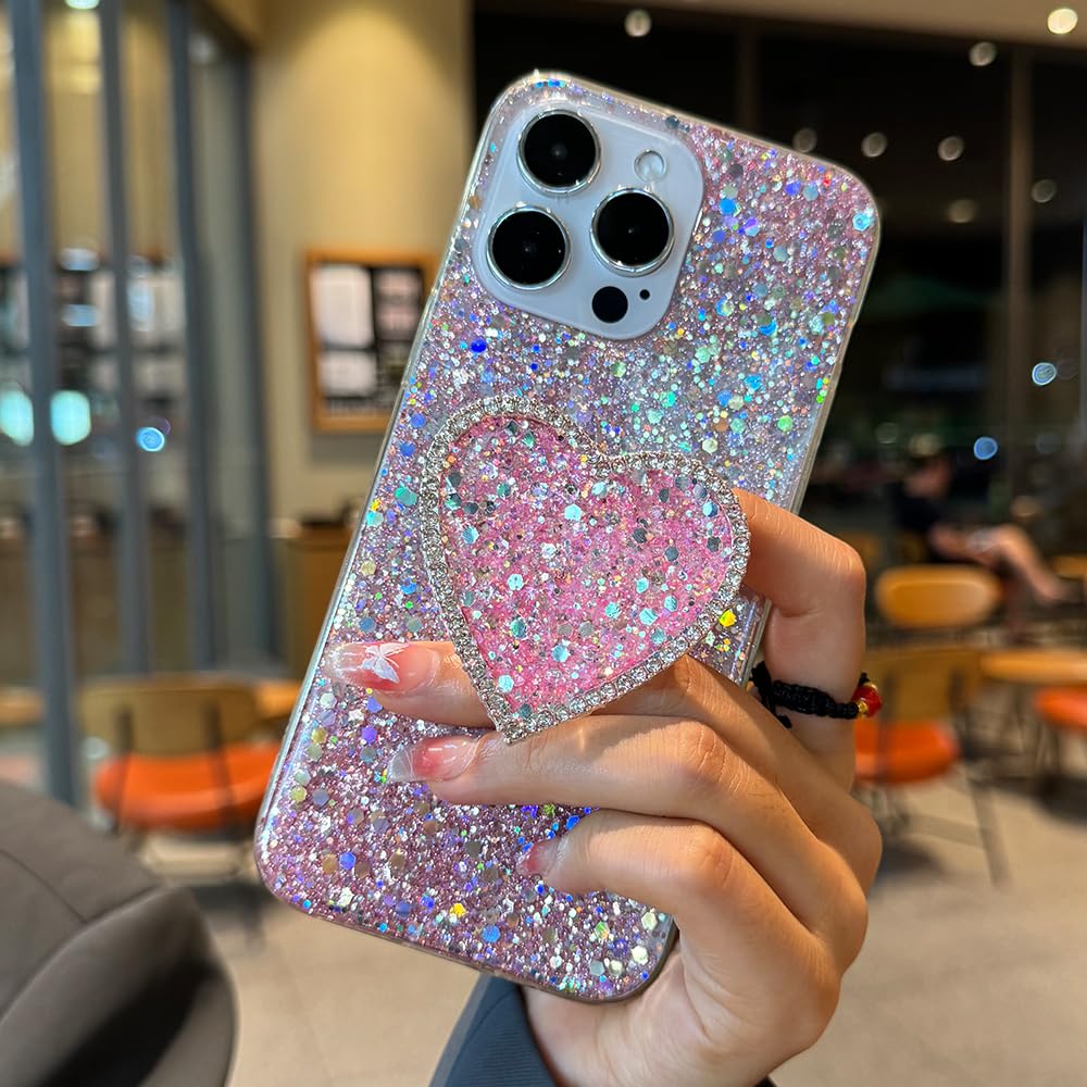 MUYEFW Bling Compatible with iPhone 16 Pro Case, Design for Women Girl Cute Glitter Soft Edge Extra Shockproof Protective Phone Cover with Sparkle