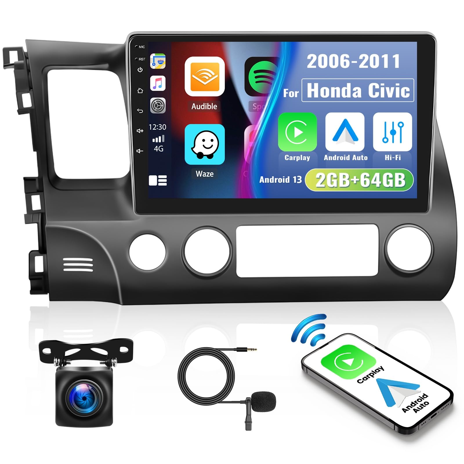 2+64G [Hi-Fi Audio] Android 13 Car Stereo for Honda Civic 2006-2011, 10.1" Touch Screen GPS Navigation, Wireless Apple Carplay Android Auto Bluetooth,