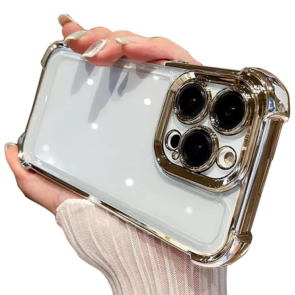 Casechics Compatible with iPhone Case,Crystal Electroplated Bumper Corner Protection Transparent Clear Soft Shockproof Cover Phone Case (Gold,iPhone