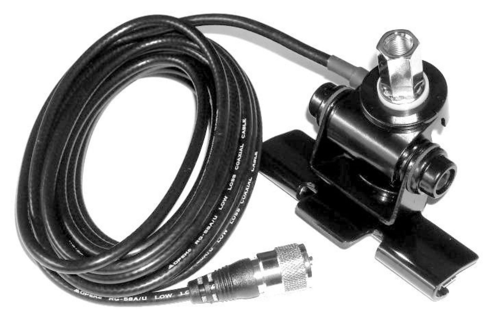 Trunk Lid/Hatchback Antenna Mount Universal Color: Black Right Angle 3/8" x 24 Threaded Stud 17 ft Coax w/PL-259 OPEK AM-204-7-SM Trunk Lip Antenna Mount w / 3/8″ X 24T Connector and cable