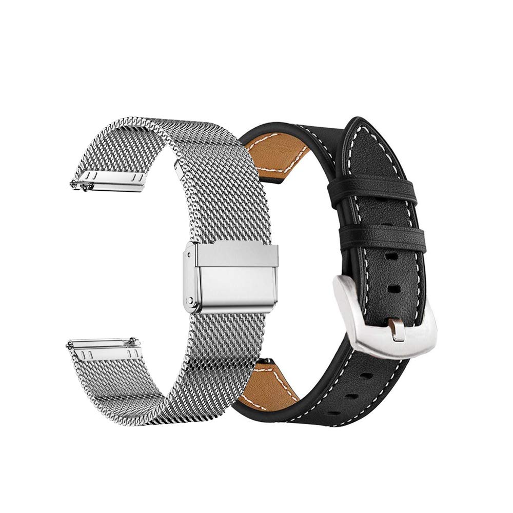 The set of a leather watch band and a stainless steel watch wristband feature a combination of functionality and style, great for most occasions 20mm Quick Released Pins are included: Convenient and easy to install and detach your watch, no tool needed Made of premium mesh woven stainless steel with