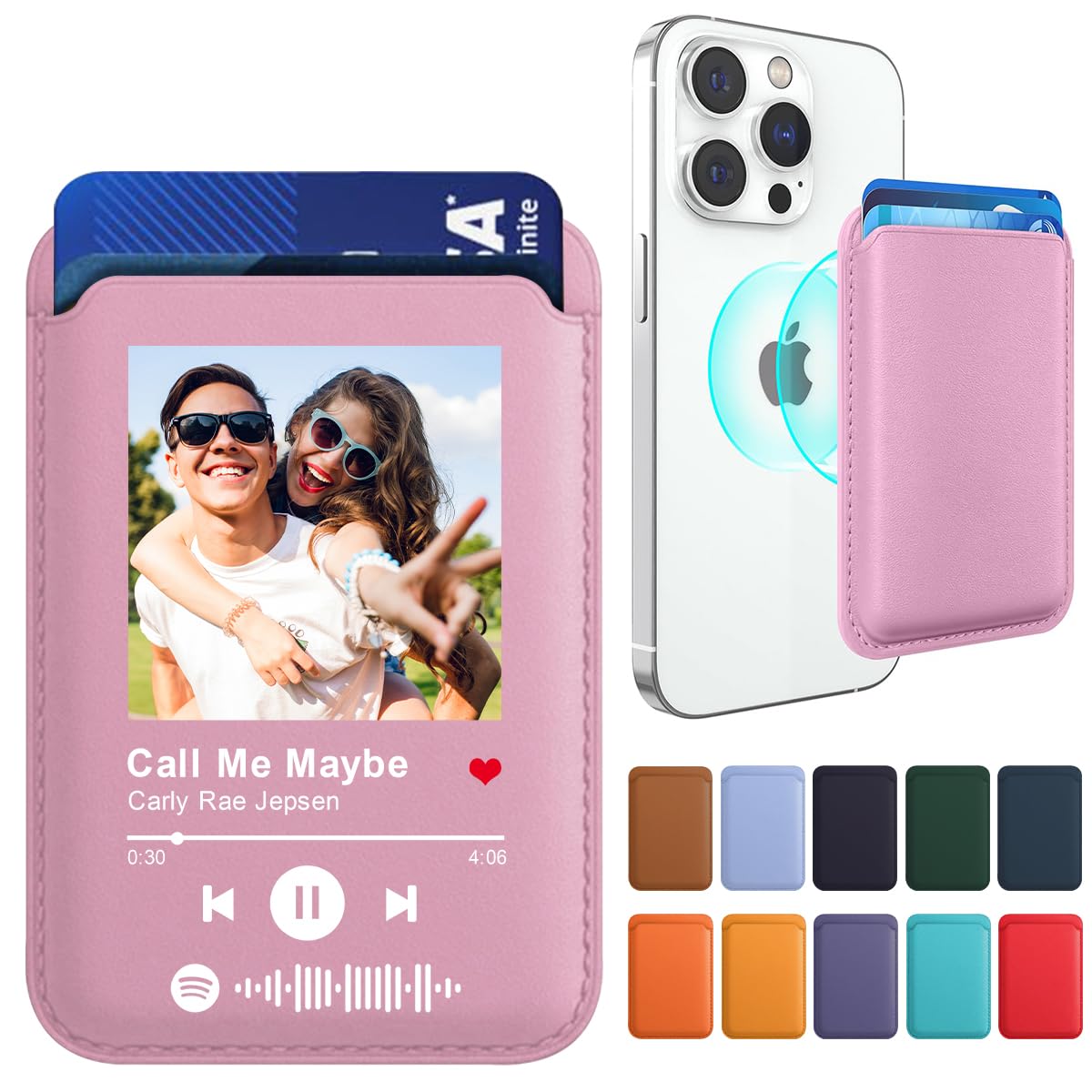 Custom Magnetic Wallet Phone Card Holder for iPhone 17/16/15/14/13/12 Series Compatible with MagSafe Customized Spotify Photo Song Code Music Player