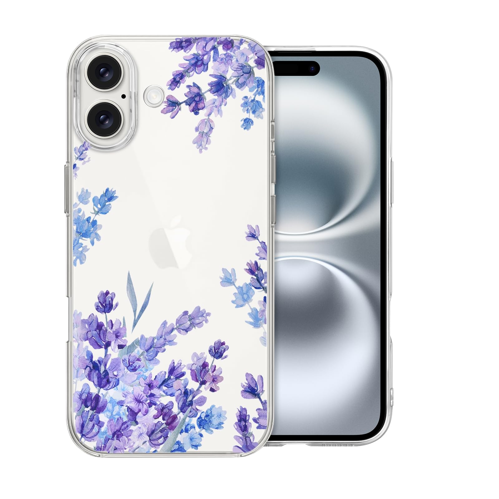 CameCosy Flowers Case Compatible for iPhone 16 with Purple Lavender Clear Floral Design for Women Girls Teen,Full-Body Protection Soft TPU Slim Case