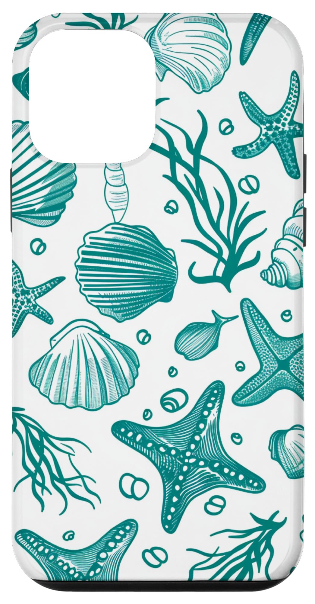 Coquette Preppy hand painted seashell pattern, in Teal and white watercolor. Aesthetic Beach and Ocean. For those who love toile and vintage pattern Coastal Beach Summer Teal Seashell Aesthetic Toile Girl Two-part protective case made from a premium scratch-resistant polycarbonate shell and shock ab