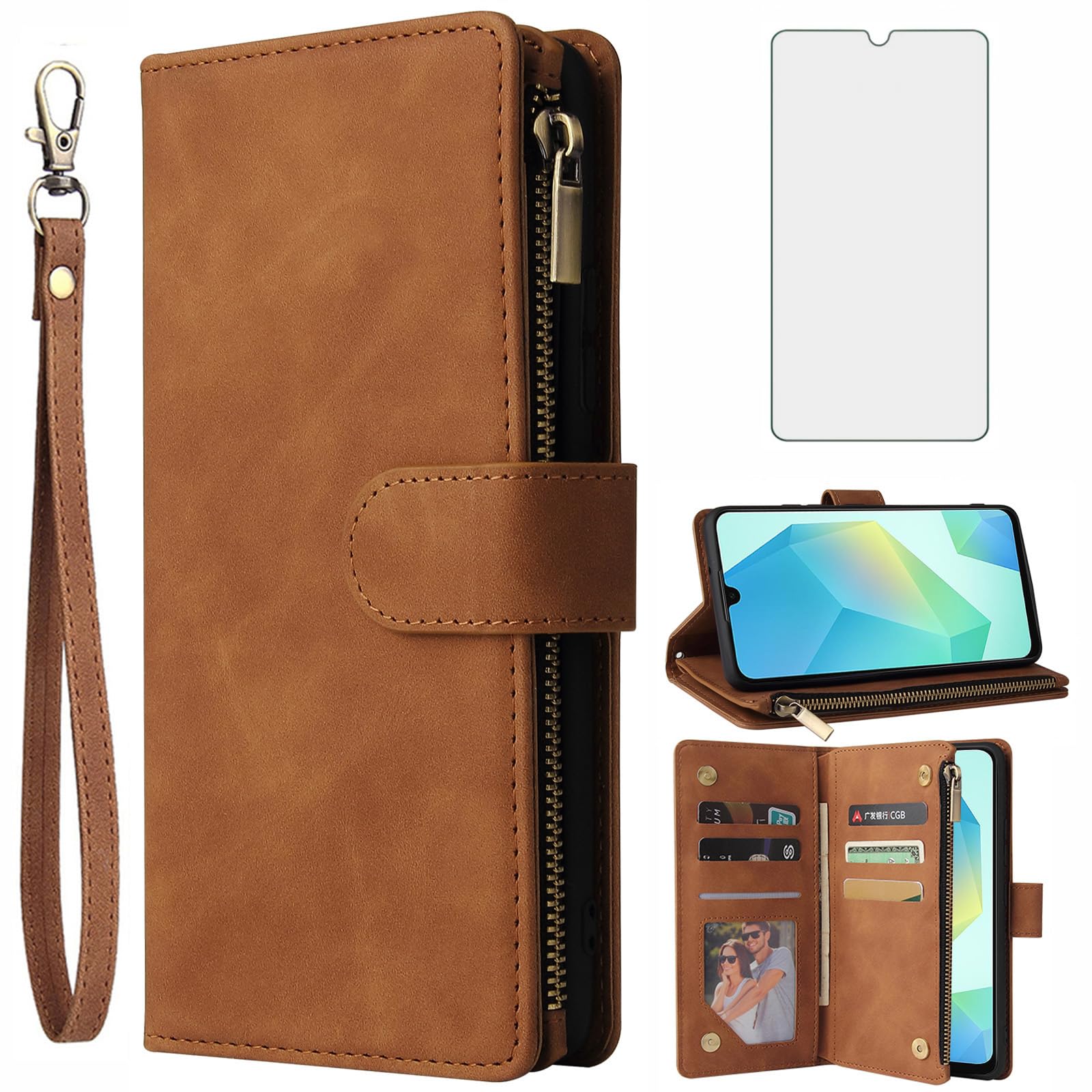 【Compatible Models】: Compatible with Samsung Galaxy A16 (4G) / A16 5G, NOT compatible with other devices. 【Package includes】: We will send the phone case with 1 piece tempered glass screen protector + 1 piece silicone detachable wrist strap. 【Card Holder】:6 card slots securely hold your