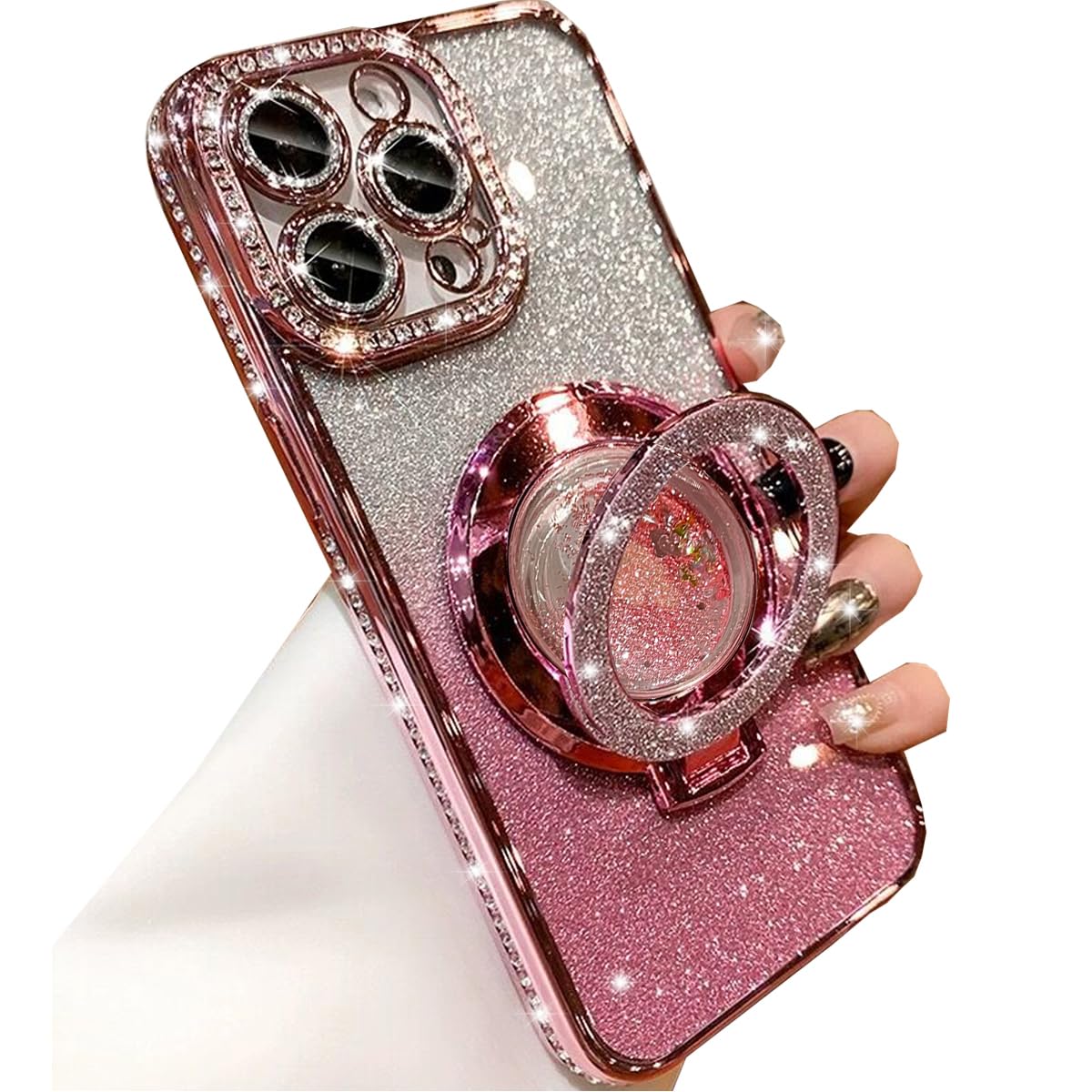 Changjia Glitter Kickstand Case for iPhone 14 Pro Max,Luxury Bling Sparkly Diamond Rhinestone with Camera Protector Liquid Flowing Ring Stand TPU
