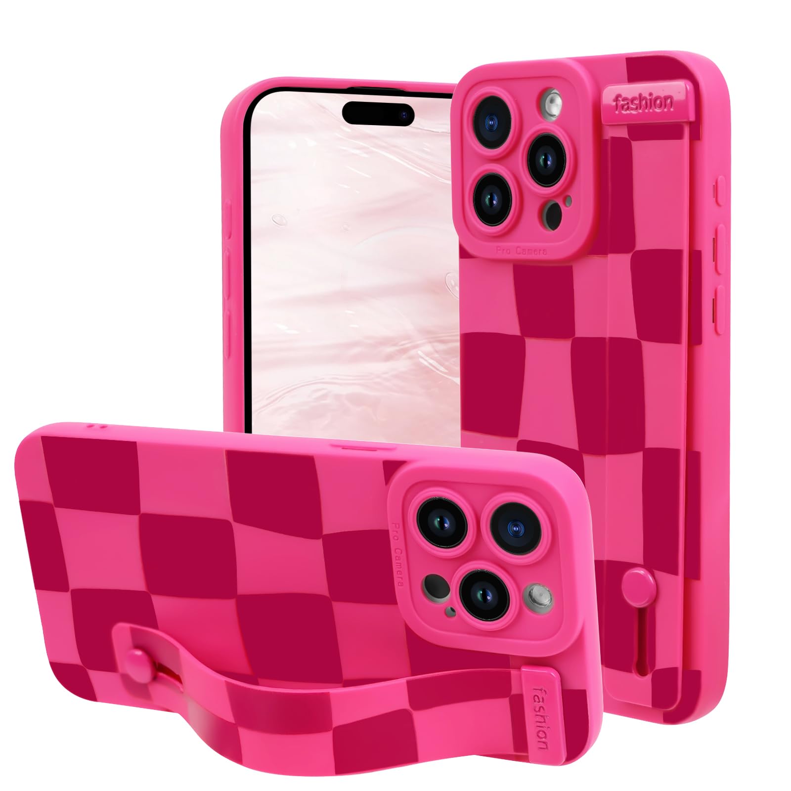 Lovmooful Compatible for iPhone 14 Pro Max Case Cute Aesthetic Checkerboard Lattice Plaid Design with Wrist Strap for Girls Women Soft TPU Shockproof
