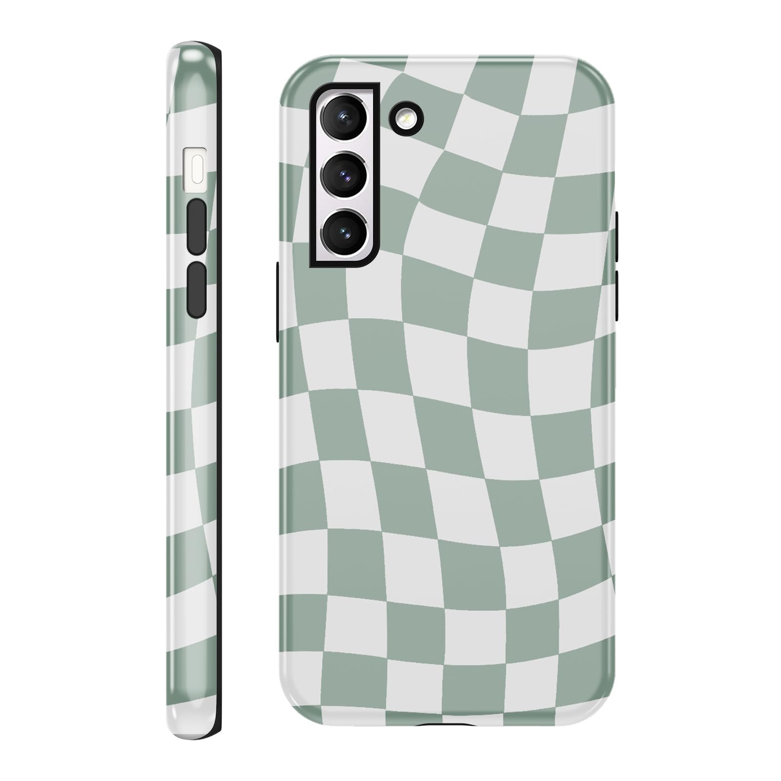 Yomjew Cute Checkered Phone Case for Samsung Galaxy S21 5G Case 6.2", Coquette Green Checkerboard Lattice Pattern Print Design 2-in-1 Glossy Phone