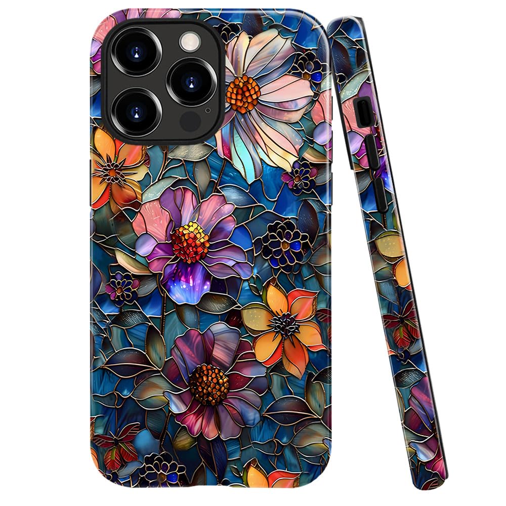 TnXee Case Compatible with iPhone 12 Pro Max,Fall Prevention Bright Hybrid 2-Layer Hard Shell Phone Case for Girls Boys,Colorful Floral Flower Art