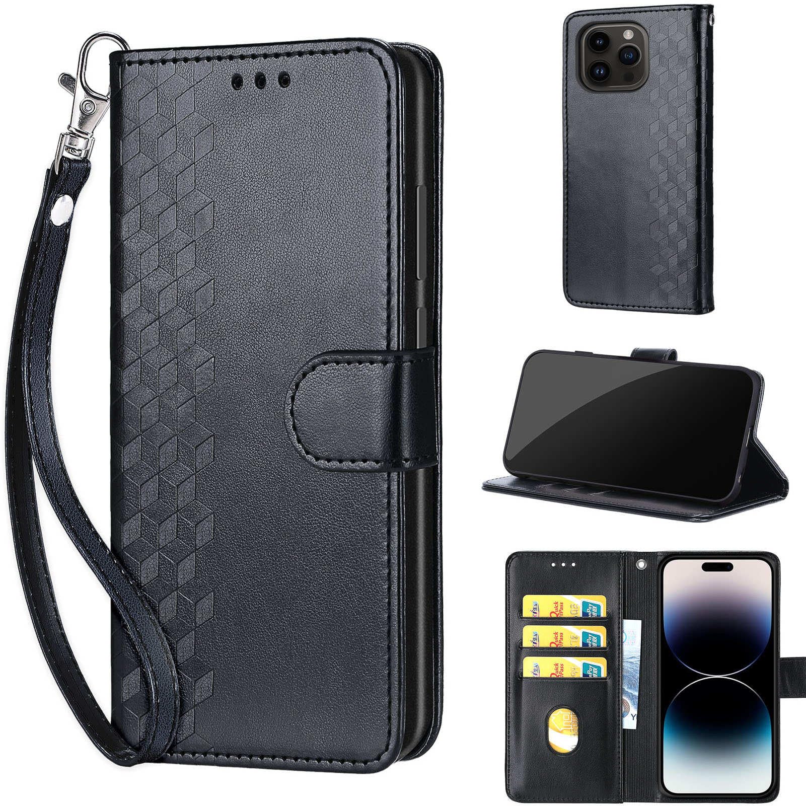 KENHONER Designed for iPhone 15 Pro Max Case Wallet,Women Flip Folio Cover with Embossed PU Leather Stand Credit Card Holders Slots Wrist Strap Phone