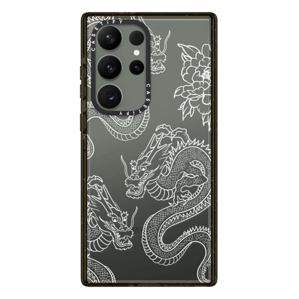 CASETiFY Impact Galaxy S23 Ultra Case [4X Military Grade Drop Tested / 8.2ft Drop Protection] - Dragons - Clear Black