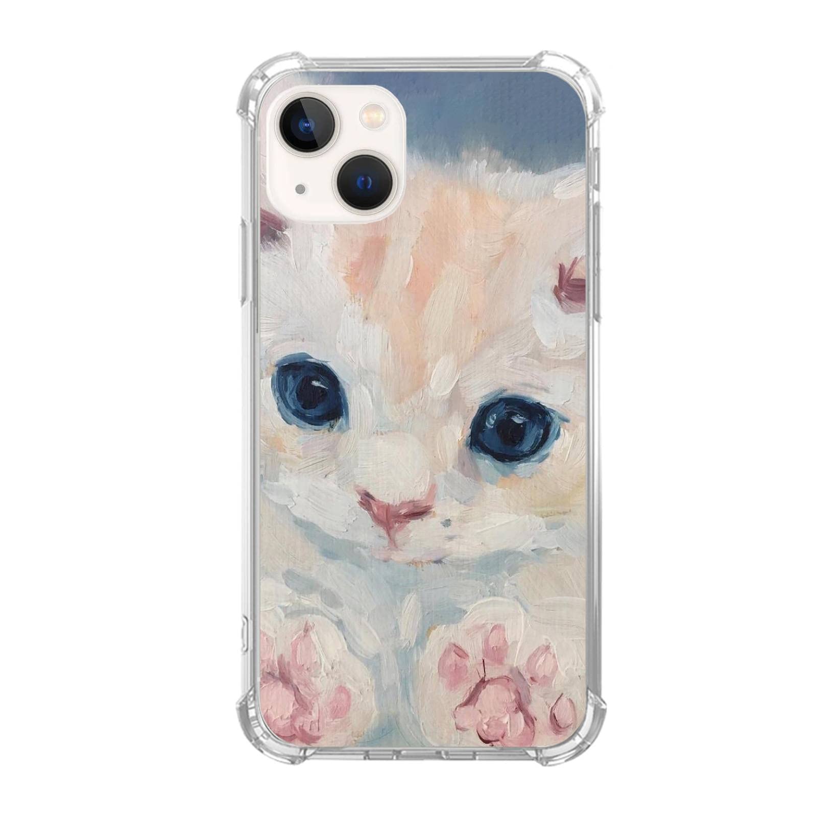 Wizeyake Cute Cat Painting Phone Case Compatible with iPhone 14 Plus,White Animals Trendy Cool Girl Boy Case for iPhone 14 Plus, Silicone Shockproof