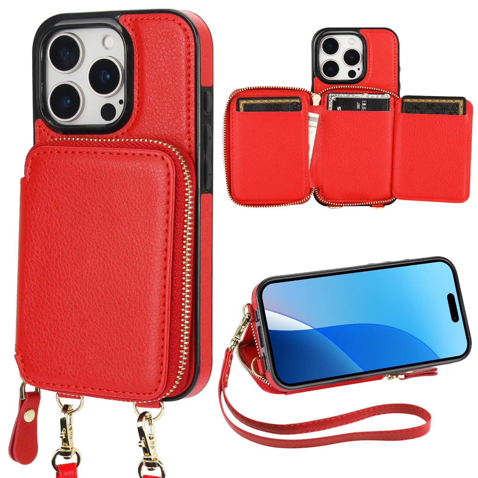 【Compatibility】: This zippered purse case for iPhone 16 Pro is Only compatible with iPhone 16 Pro (6.3" Display release in 2024), Not fit for other phone models. Please check your phone model before placing an order. 【RFID Shielding Material】: RFID block technology is applied to read and cop