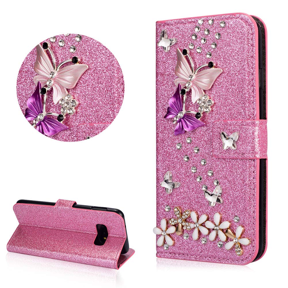 Compatible Phone Model - The Handmade Rhinestone 3D Diamond Glitter Leather Wallet Flip Phone Case is only compatible with Samsung Galaxy S10. Not suitable for any other model of phone. Unique Design - Shiny glossy surface comes with crystal 3D gems butterfly flower pattern. Multiple card slots for